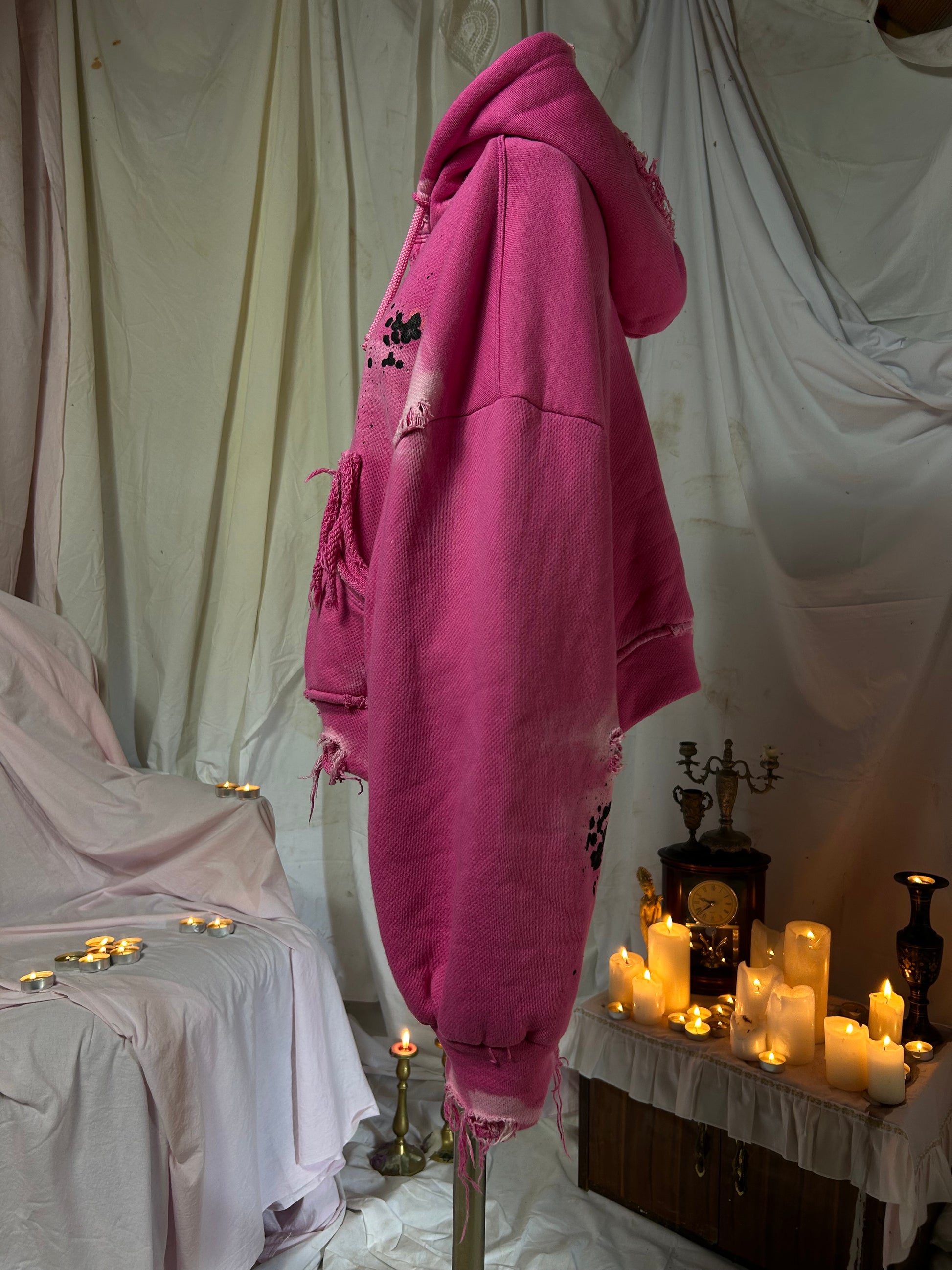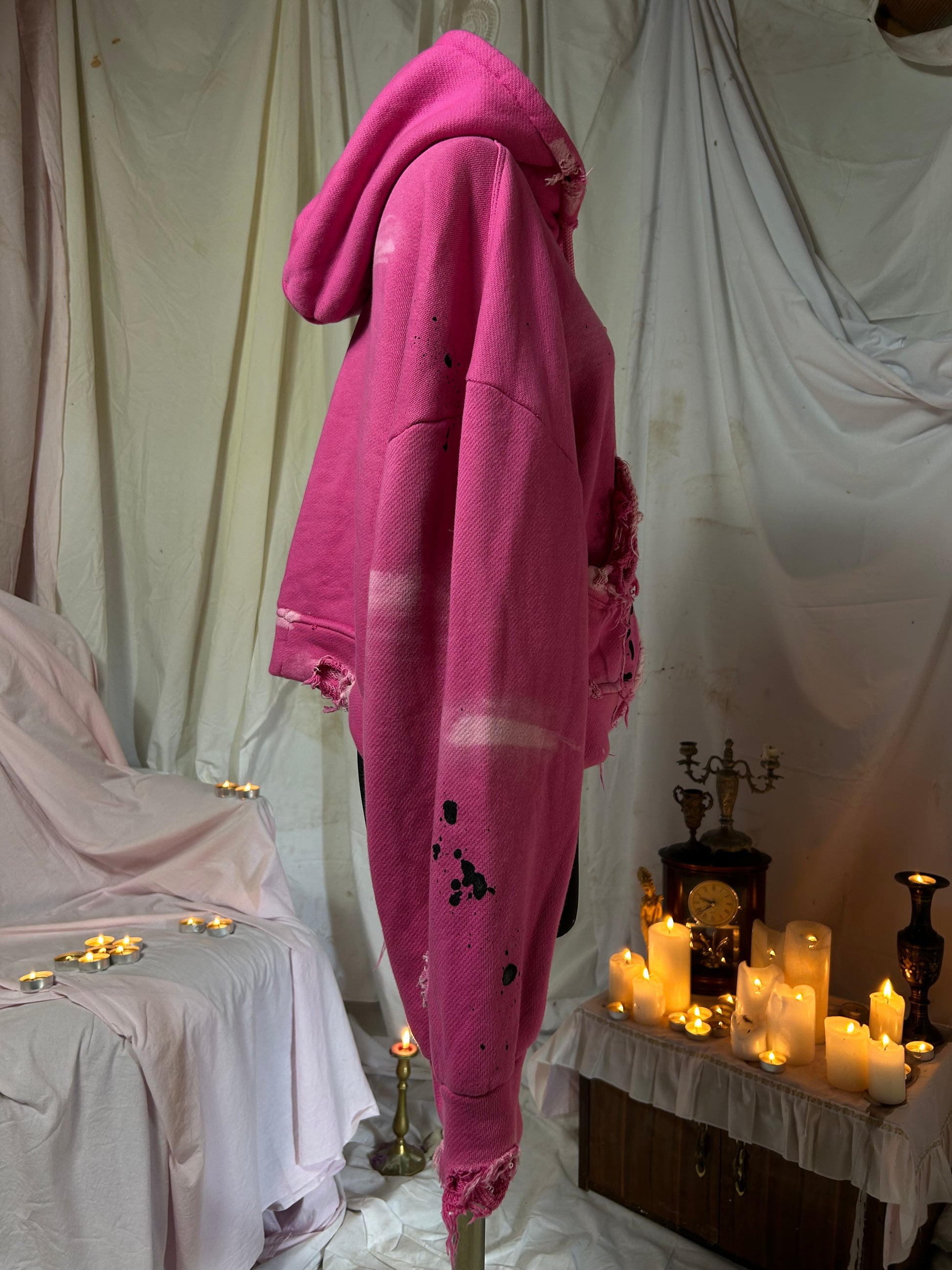 handmade distressed zip up hoodie